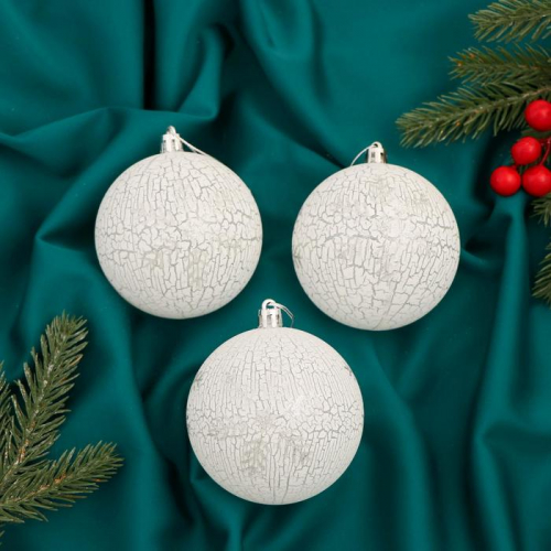Ёлочные игрушки «Феклиста», шары новогодние, d=8 см, 3 шт., серебристо-белый