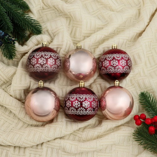 Ёлочные игрушки набор 12 шт. «Праздничный хоровод» 4 см, розовый