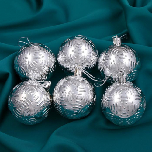 Ёлочные игрушки «Объёмные бантики», шары новогодние, d=6 см, набор 6 шт., серебро