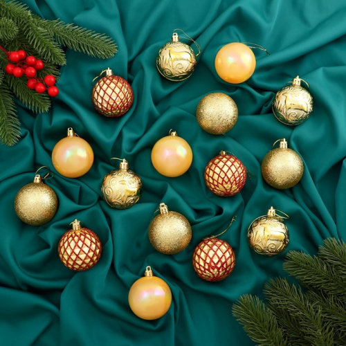 Ёлочные игрушки «Мелодия», шары новогодние, d=6 см, набор 16 шт., грани глянец, золото