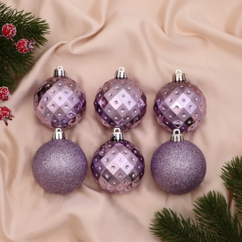 Ёлочные игрушки «Элитная геометрия», шары новогодние, d=6 см, набор 6 шт., сиреневый