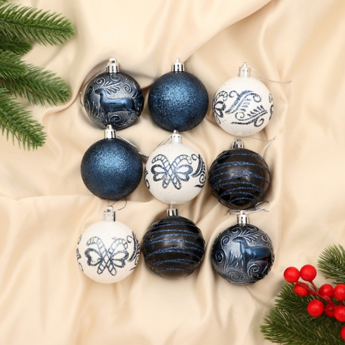 Ёлочные игрушки «Мелодия», шары новогодние, d=6 см, набор 9 шт., элит, синий, МИКС