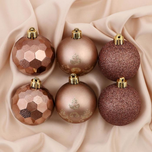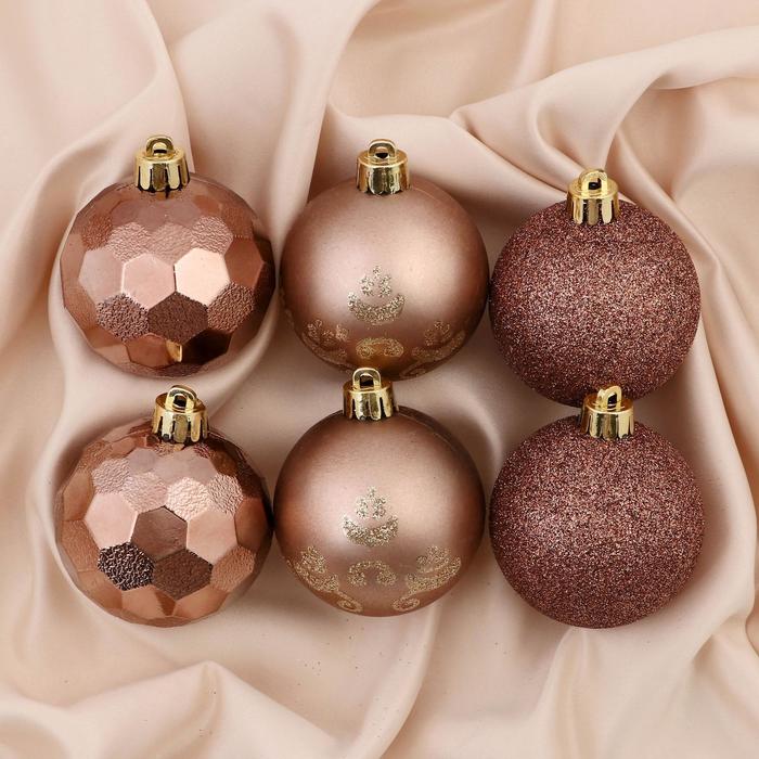 Ёлочные игрушки «Морозная росшивь», шары новогодние, d=7.5 см, набор 6 шт., орнамент, коричневый