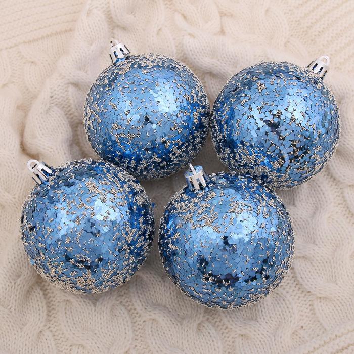 Ёлочные игрушки «Переливы», шары новогодние, набор 4 шт., d=8 см, синий