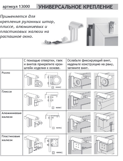 Универсальное крепление для алюминиевых, деревянных, пластиковых откидных окон белый арт.13000