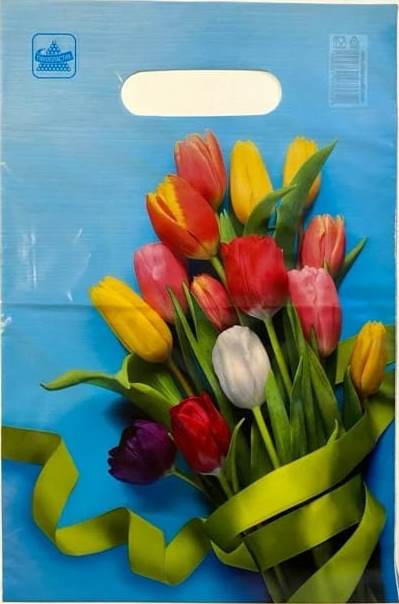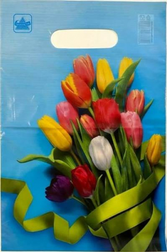 Красочные и яркие подарочные полиэтиленовые пакеты. Подарочный пакет имеет вырубную ручку. Такой подарочный пакет создаст праздничное настроение с любым подарком внутри.