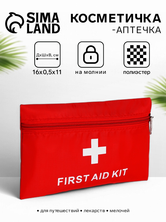 Косметичка-аптечка на молнии, маленькая, плоская, с рисунком, красная