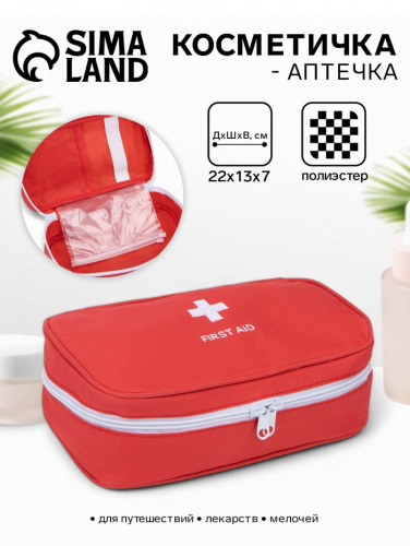 Косметичка-аптечка на молнии, на подкладке, с ручкой, красная