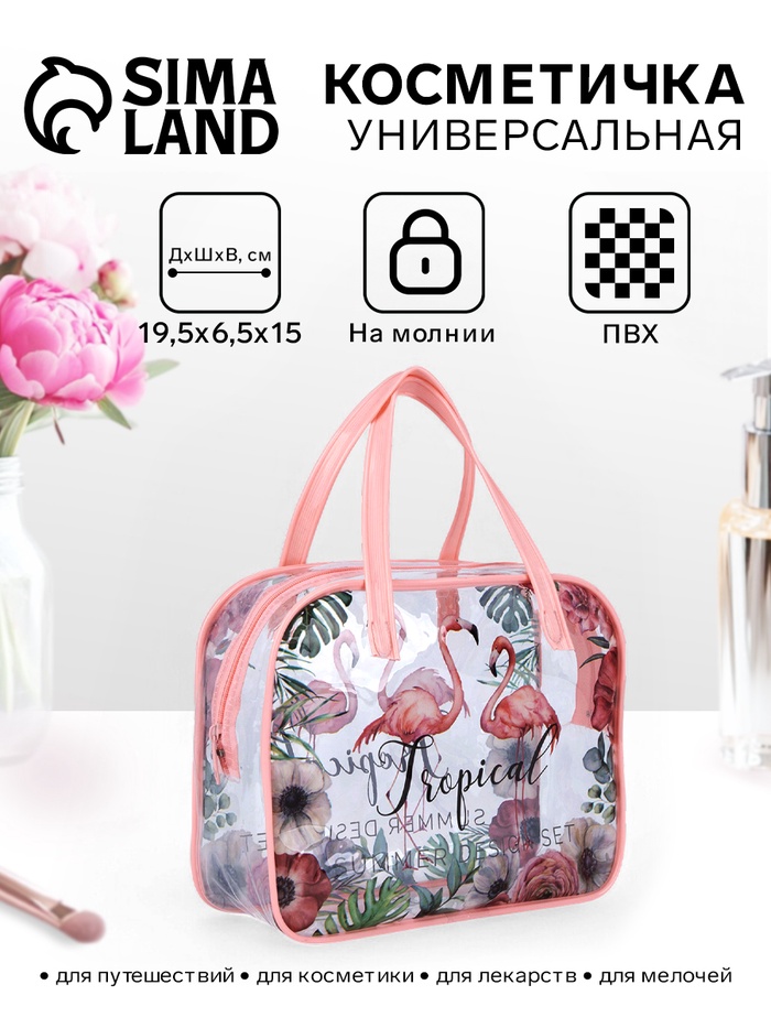 Косметичка на молнии для бассейна, большая, с ручками, с принтом Tropical, розовый