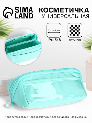 Косметичка на молнии, маленькая, с отделами, зелёная