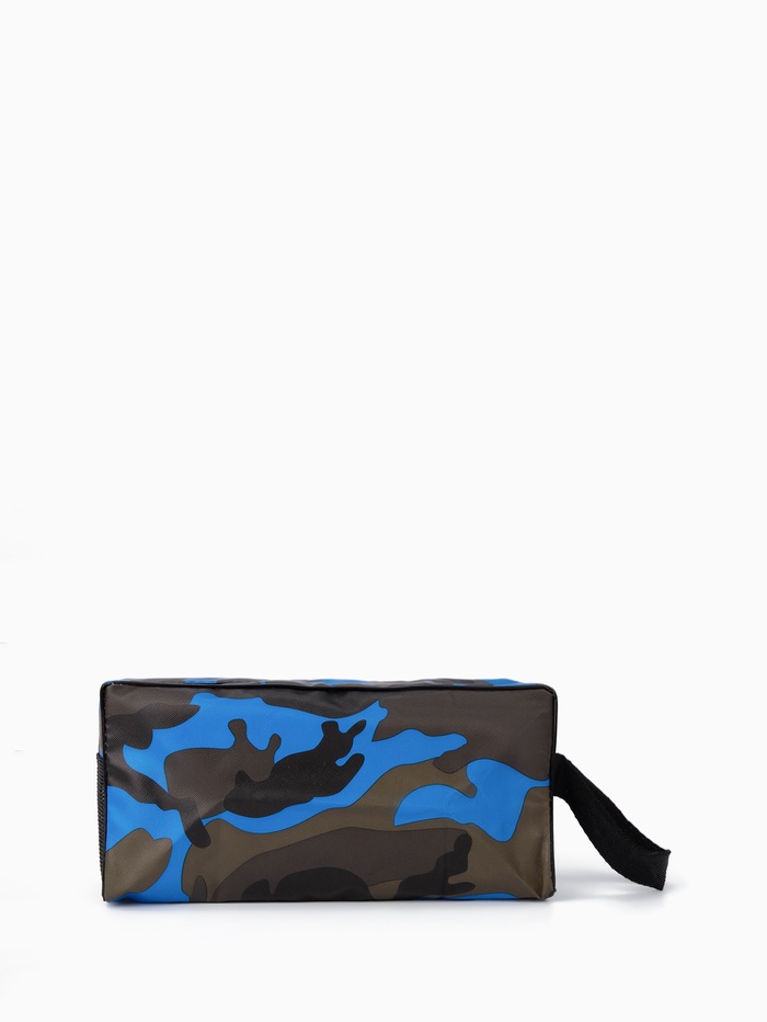 Косметичка на молнии мужская, с ручкой, с принтом, с сеткой, камуфляж/синяя