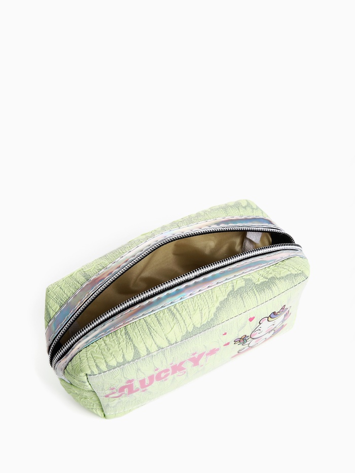 Косметичка на молнии объёмная, с подкладкой, маленькая, с принтом, зелёная