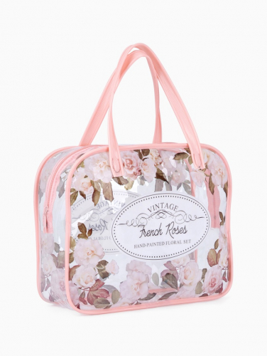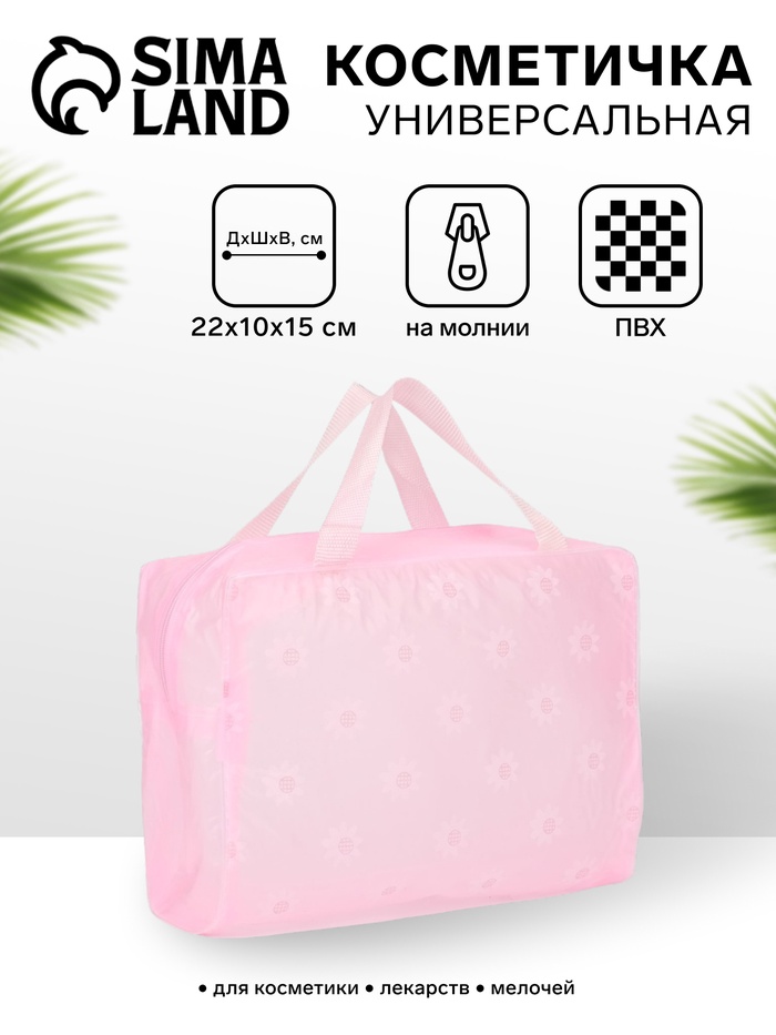 Косметичка на молнии, с ручками, с цветочками, розовая