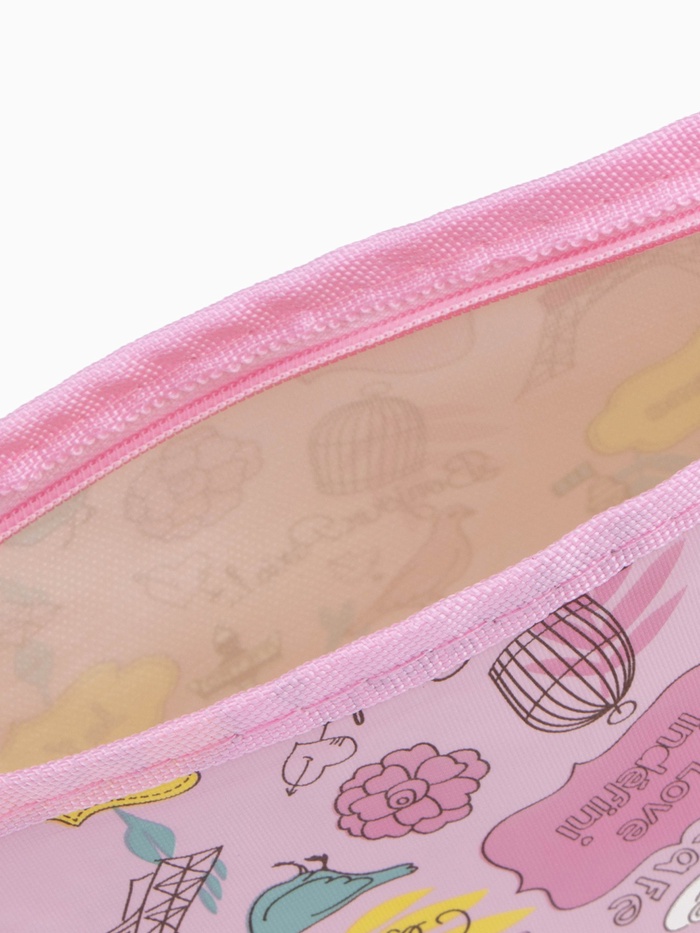Косметичка на молнии, треугольная, маленькая, с принтом, нежно-розовая