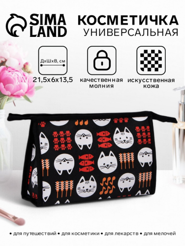 Косметичка на молнии, треугольная, средняя, с принтом, чёрная