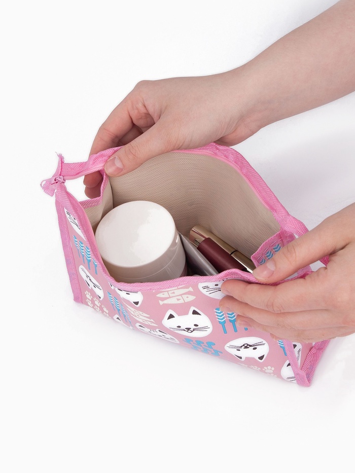Косметичка на молнии, треугольная, средняя, с принтом, розовая
