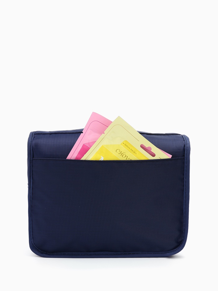 Косметичка-несессер дорожная на молнии, липучках, с крючком, ручкой, синяя
