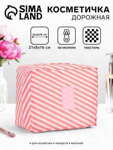 Косметичка - органайзер дорожная на молнии, с карманами, розовая