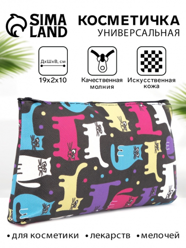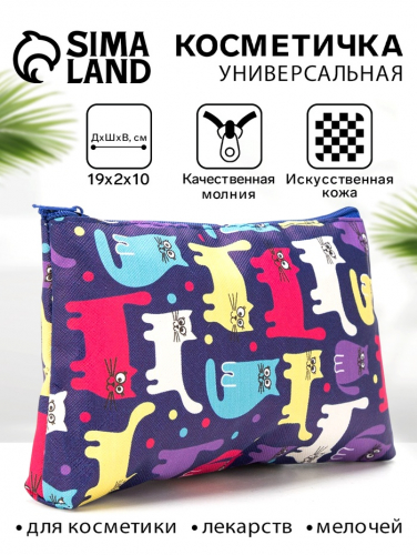 Косметичка - пенал «Коты», на молнии, плоская, разноцветная