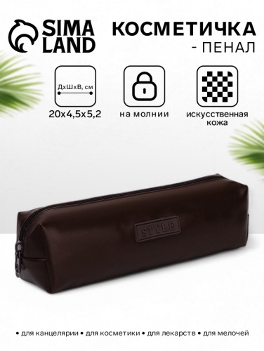 Косметичка-пенал на молнии, длина 20 см, чёрная