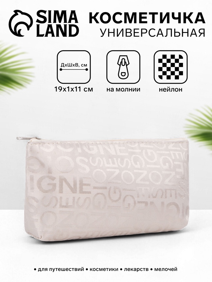 Косметичка - пенал на молнии, маленькая, с буквами, белая