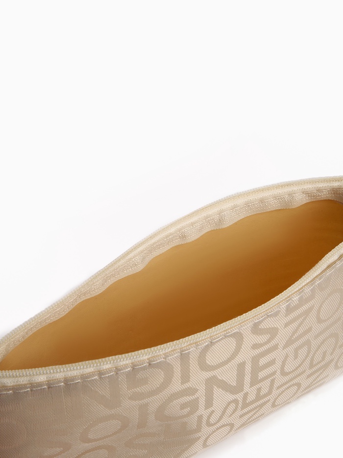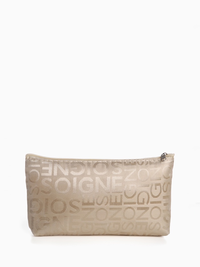 Косметичка - пенал на молнии, маленькая, с буквами, бежевая