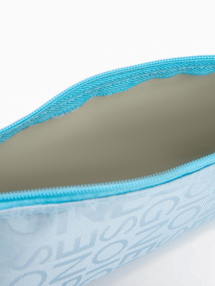 Косметичка - пенал на молнии, маленькая, с буквами, голубая