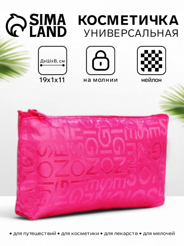Косметичка - пенал на молнии, маленькая, с буквами, малиновая