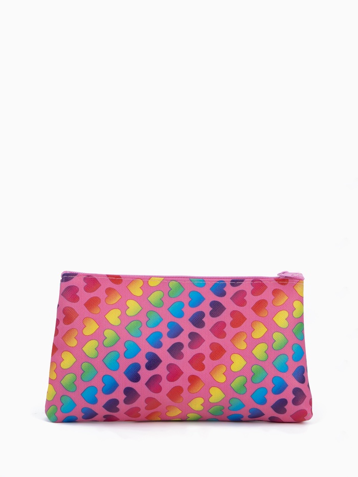 Косметичка - пенал на молнии, плоская, маленькая, с радужным рисунком, розовая