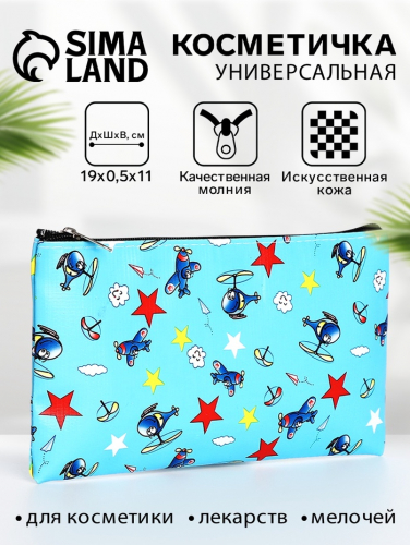 Косметичка-пенал на молнии, плоская, с рисунком, голубая