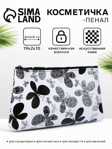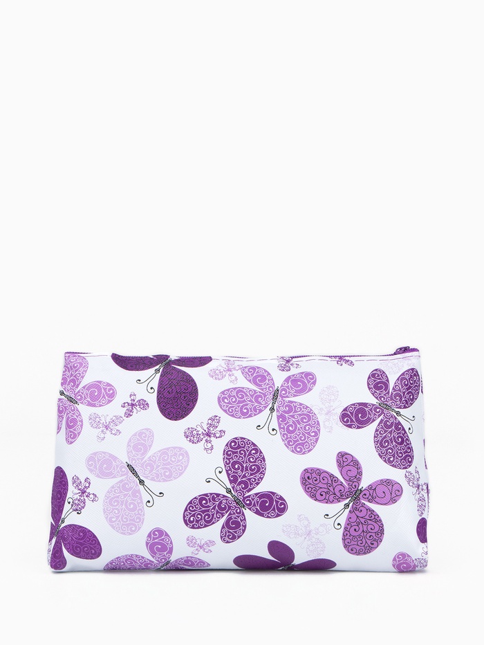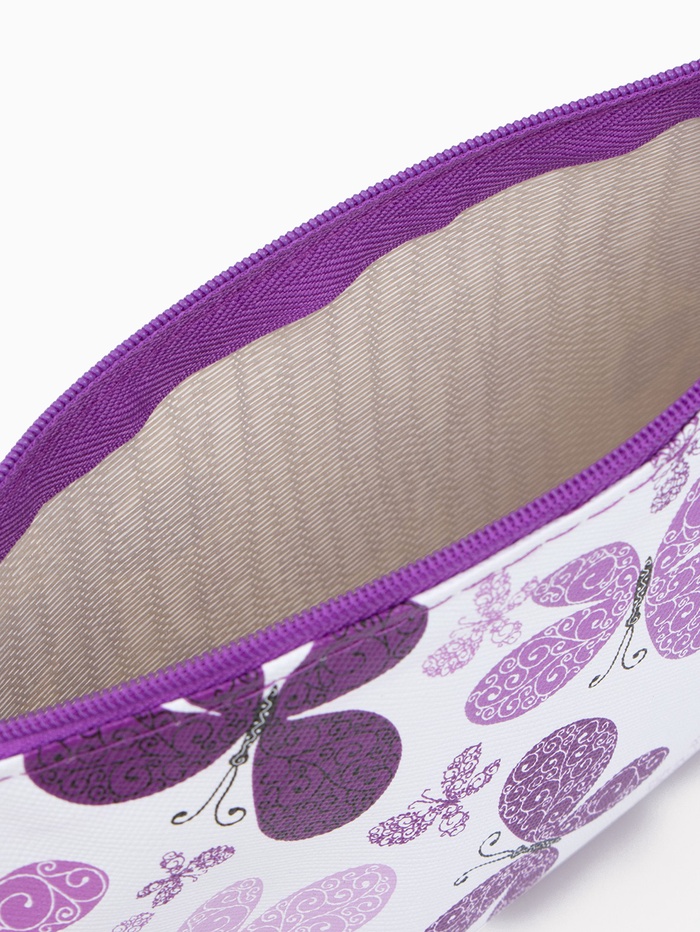 Косметичка - пенал на молнии, плоская, с ярким принтом, фиолетовая, белая