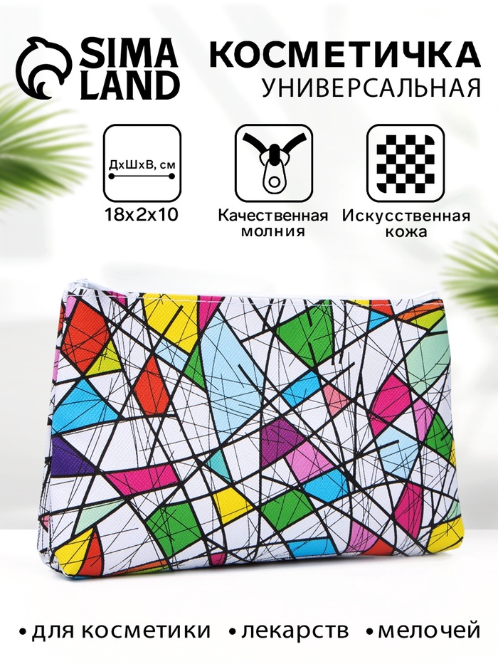 Косметичка - пенал на молнии, плоская, с ярким рисунком, разноцветная