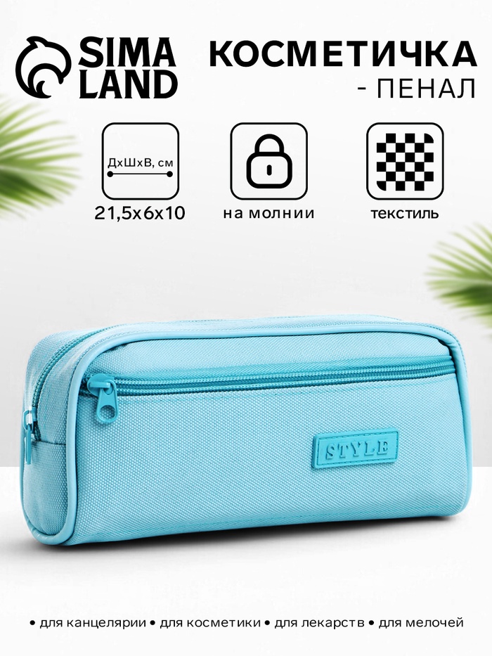 Косметичка - пенал на молнии с карманом, бирюзовая