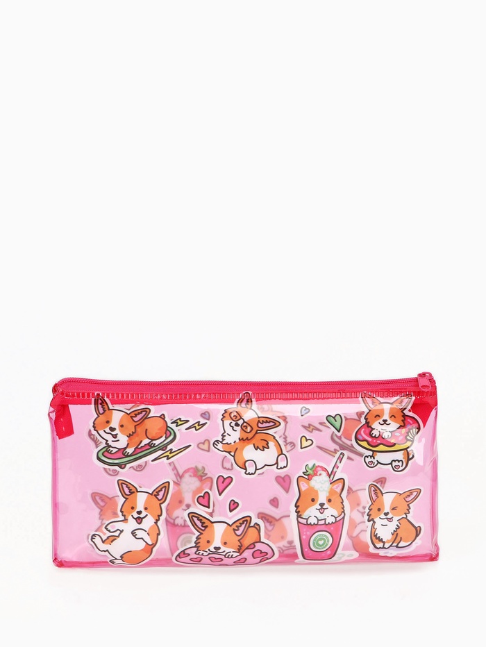 Косметичка - пенал на молнии, с ярким принтом, розовая
