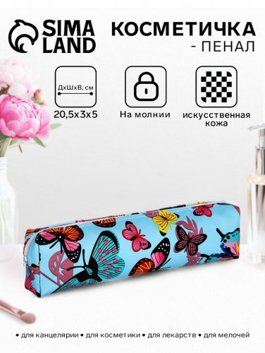 Косметичка-пенал на молнии, с ярким рисунком, голубая