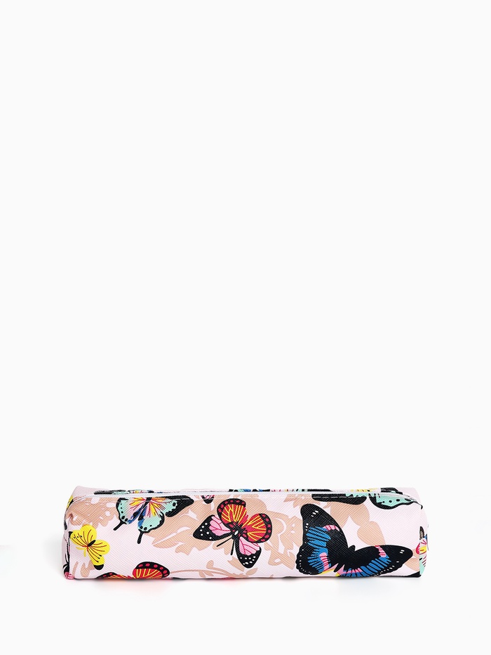 Косметичка-пенал на молнии, с ярким рисунком, нежно-розовая