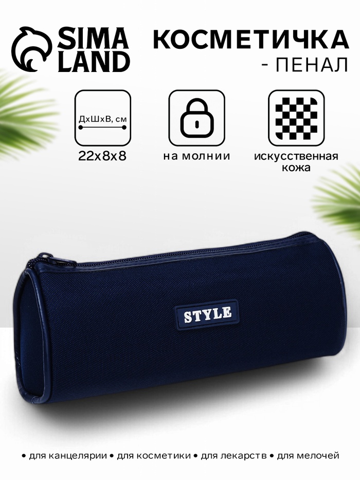 Косметичка - пенал на молнии школьная, синяя