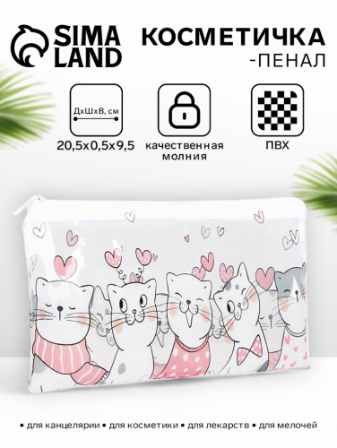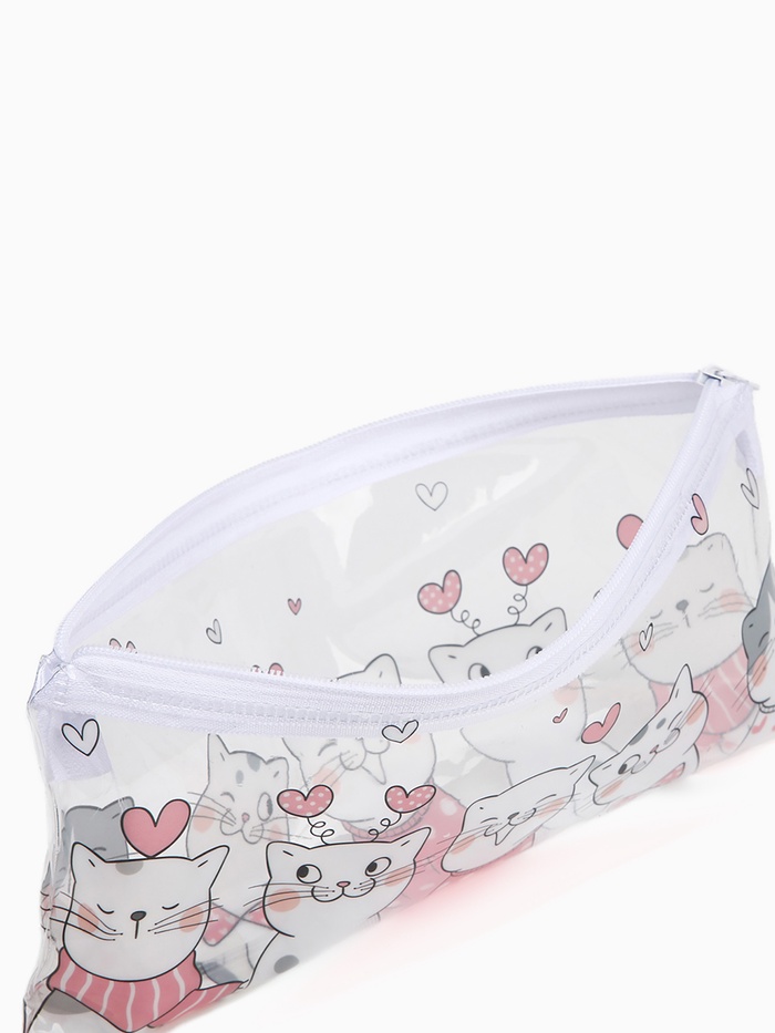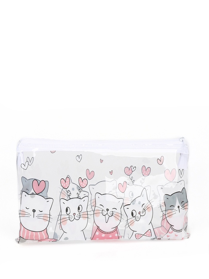 Косметичка - пенал на молнии, средний размер, с ярким рисунком, белая