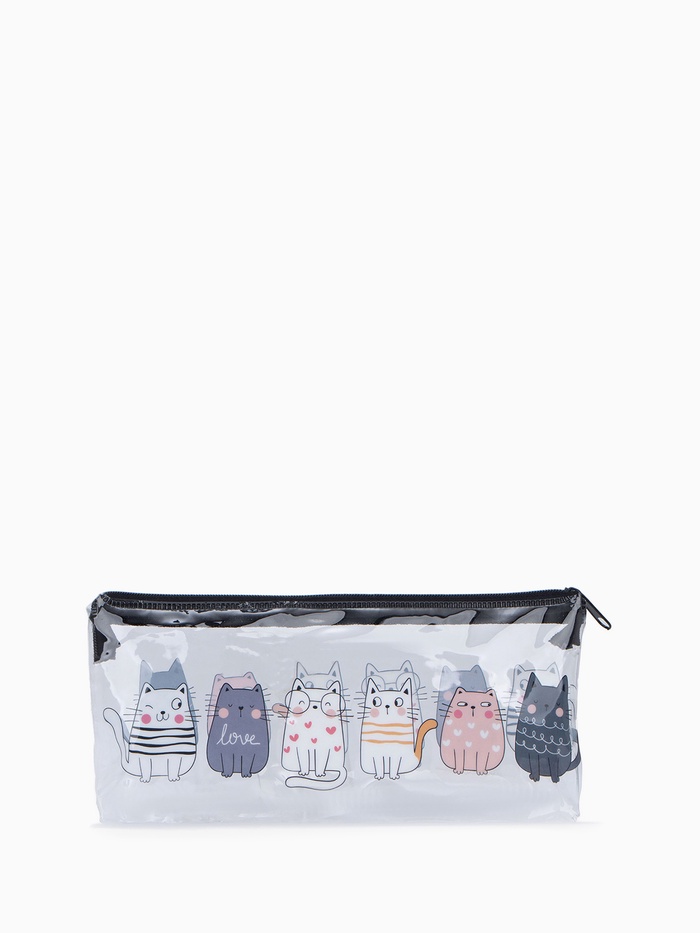 Косметичка-пенал на молнии, средний размер, с ярким рисунком, чёрная/прозрачная