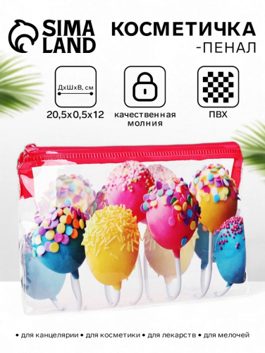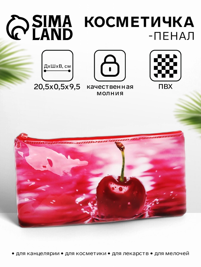 Косметичка - пенал на молнии, средний размер, с ярким рисунком, красная