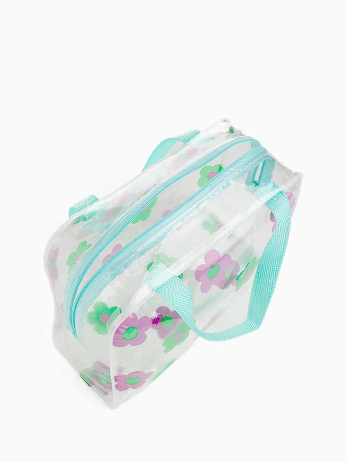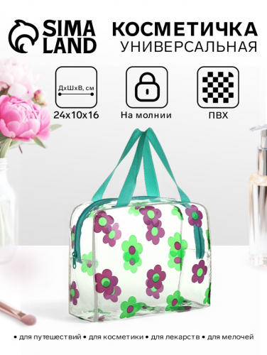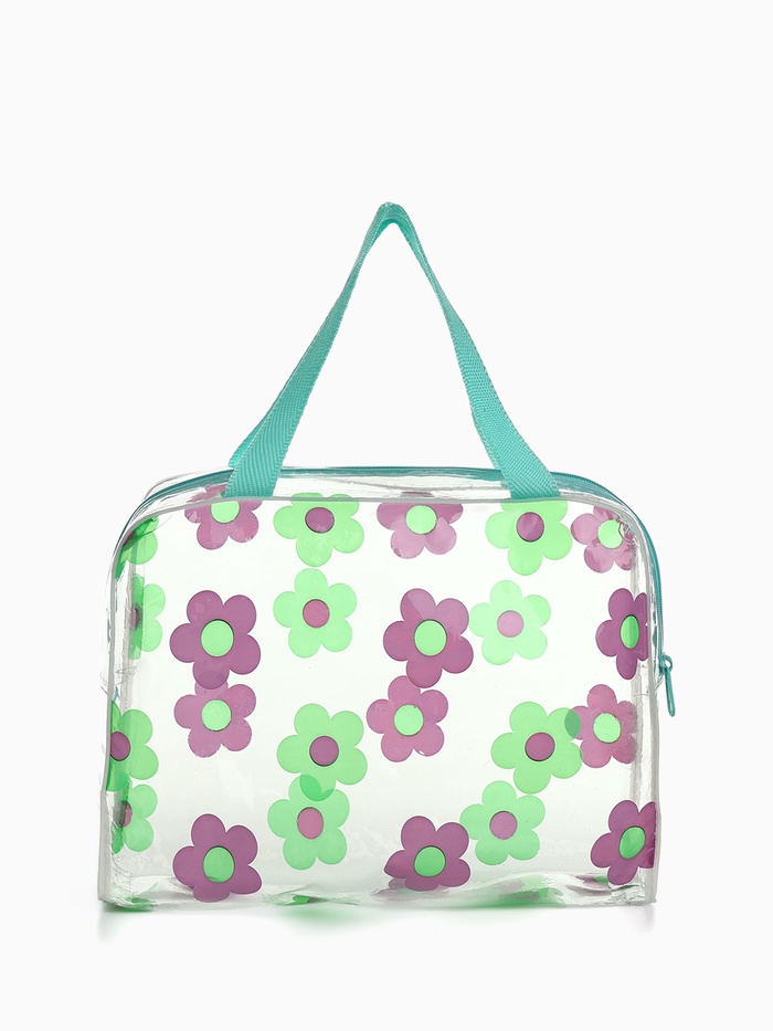 Косметичка - сумка на молнии для бассейна, с ручками, с цветочным принтом, зелёная
