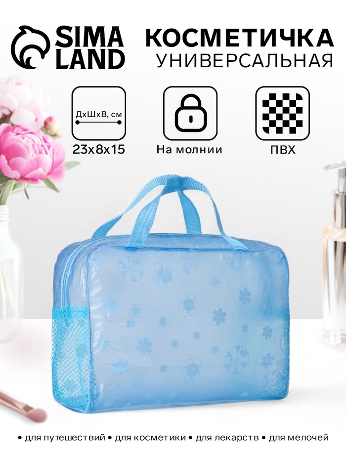 Косметичка - сумочка на молнии для бассейна, с ручками, с рисунком, голубая