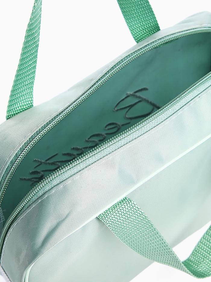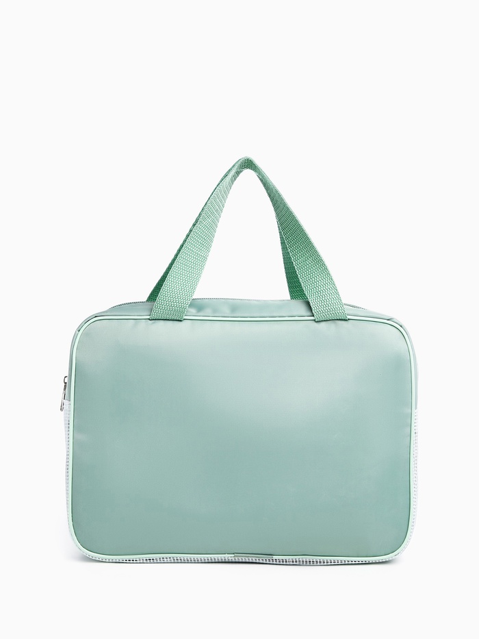 Косметичка - сумочка на молнии с сеткой, с ручками, с вышивкой, зелёная
