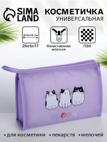 Косметичка треугольная на молнии, большая, с рисунком, сиреневая