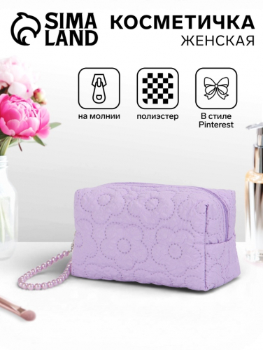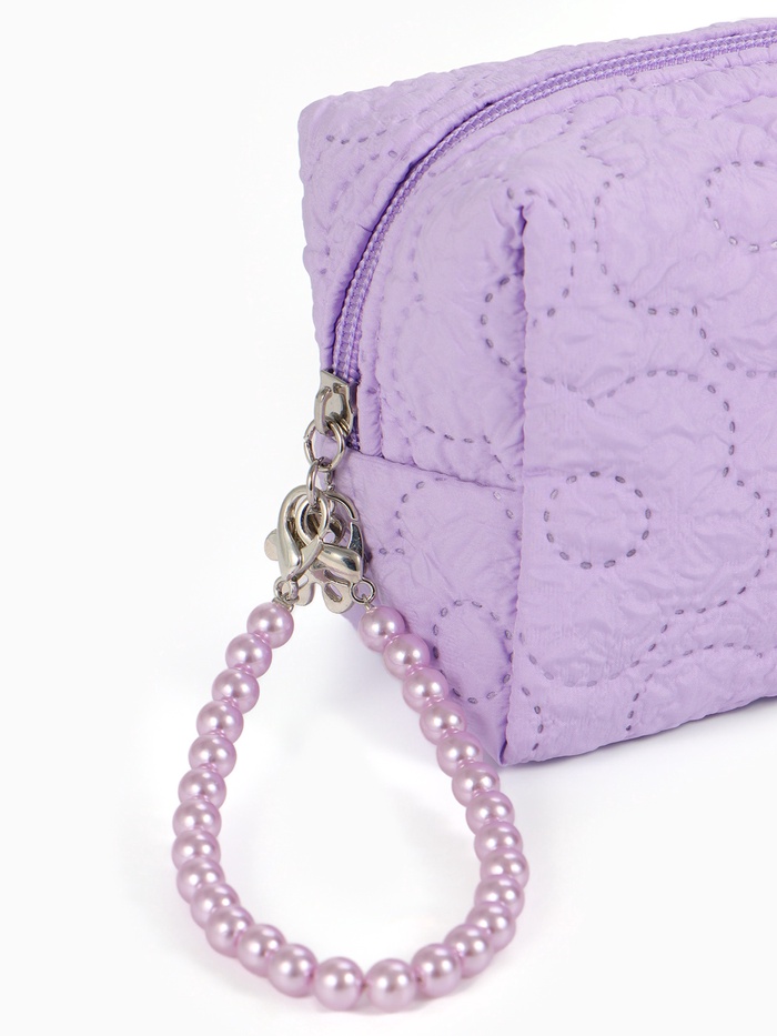 Косметичка женская «Цветочек», ручка из бусин, сиреневая