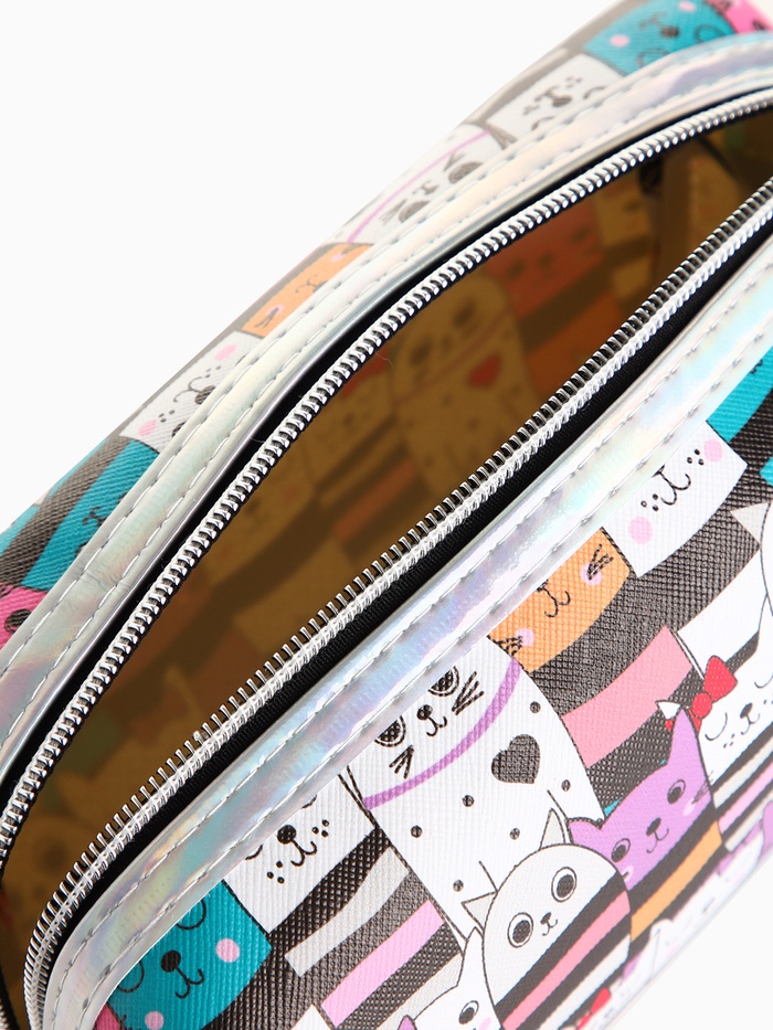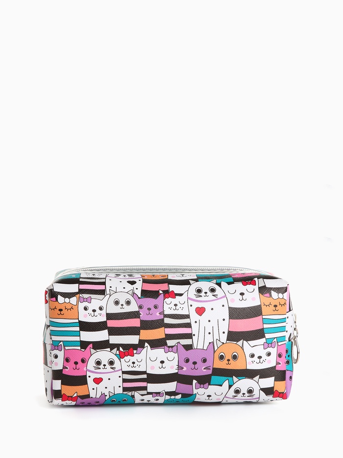 Косметичка женская на молнии объёмная, маленькая, с принтом, разноцветная