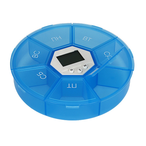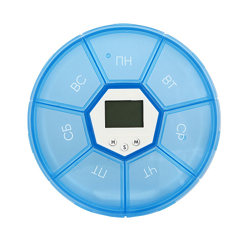 Бокс для таблеток с таймером предназначен для компактного хранения лекарственных средств и БАДов. Имеет 7 секций с маркировкой по дням недели. Бокс оснащен таймером, который будет напоминать о необходимости следующего приема препарата. Пластиковый контейнер имеет компактный размер и небольшой вес, поэтому его можно брать с собой в дорогу.