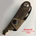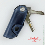 Мужская кожаная ключница от Dierhoff. Закрывается на две кнопки, внутри- шесть держателей для ключей, снаружи- металлическое кольцо. Ключница функциональна и долговечна, изготовлена с использованием значительной доли ручного труда. Высококачественная кожа держит форму без картона или пластика, неприхотлива, надёжна.
