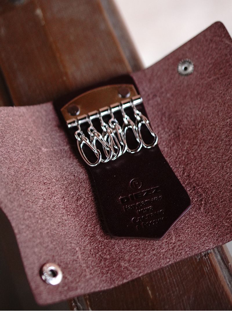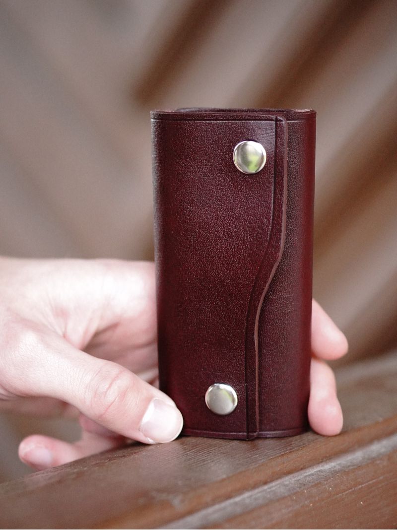 Ключница из натуральной кожи бордового цвета.