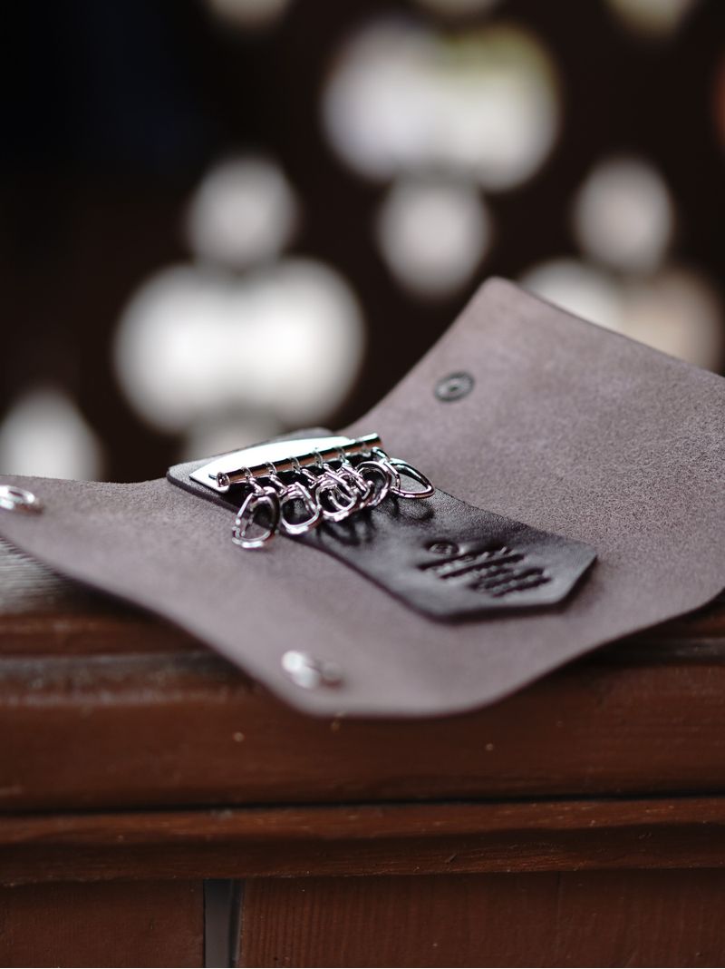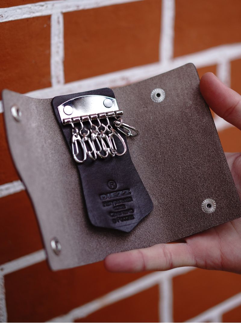 Изделие с серебряными заклёпками (хольнитенами), с кожаной ярлычком, с 6 застёжками-карабинами для ключей.